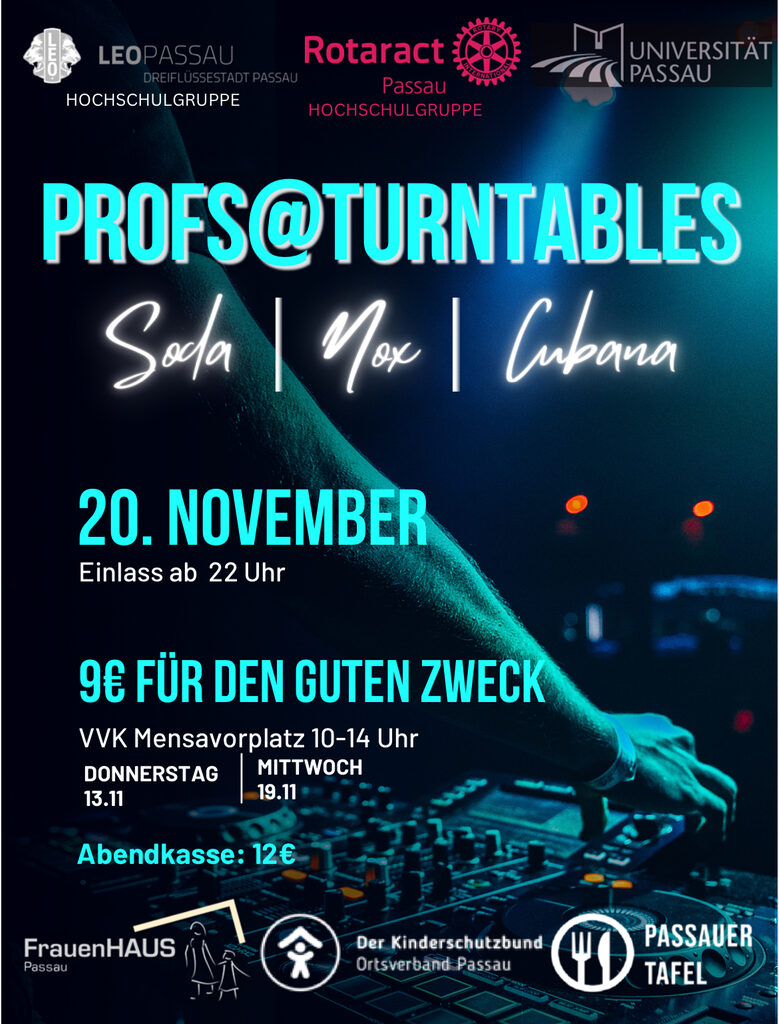 Am 20. November 2025 fand das diesjährige Profs@Turntables Event in Zusammenarbeit mit dem Leo Club Passaustatt – ein Abend voller Musik, Begegnungen und Engagement.